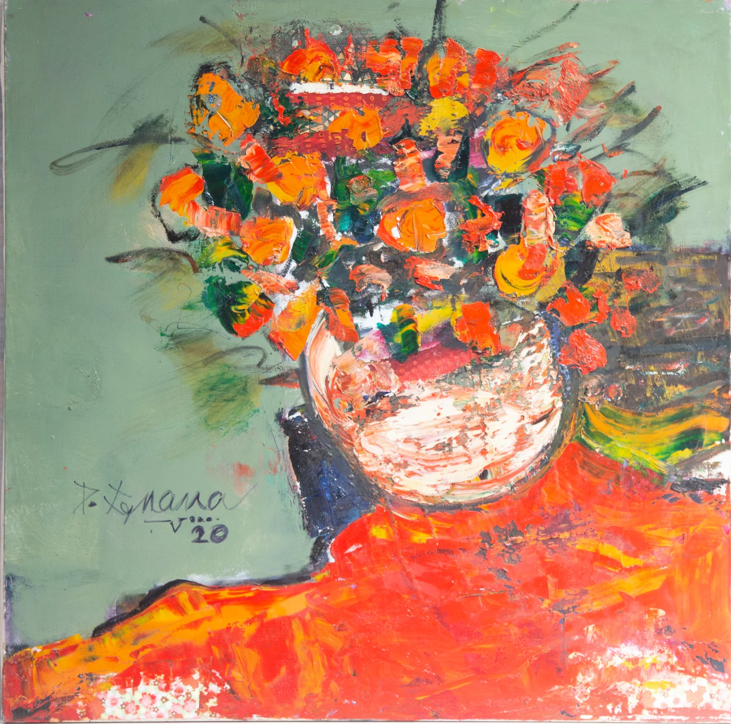 Petal Penance created in 2020 by artist Gnana P, is an expressive oil painting on canvas measuring 90 x 90 cm. Rendered in rich textures and bold strokes, the piece reflects the artist?s unique vision and mastery of the medium, making it a striking addition to any collection.